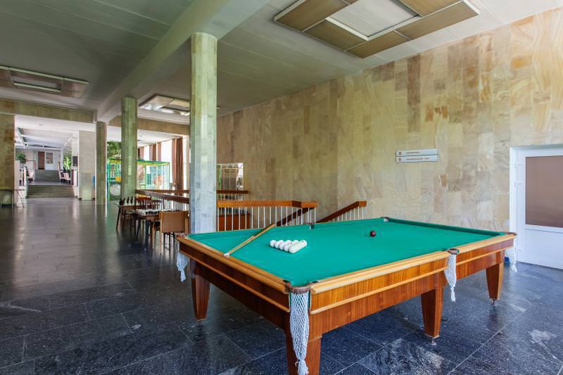 В санатории проводятся танцевальные и литературные вечера, игровые программы для детворы и кинопоказы. Развлечений в здравнице предостаточно, это и настольные шашки, и бильярд, и анимация. Гостей также ждет крытый 25-метровый бассейн, залы спортивные и с тренажерами, фитнес-центр, где проводятся спортивные развлечения, занятия по аквааэробике, оздоровительному плаванию. В здравнице есть рецепшен, детская игровая комната, полномасштабная библиотека.