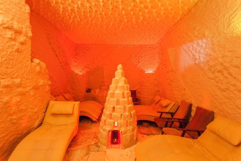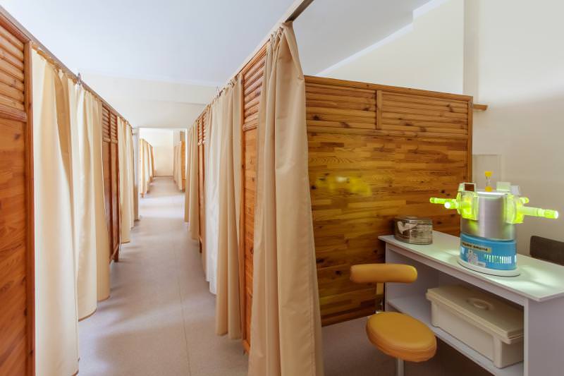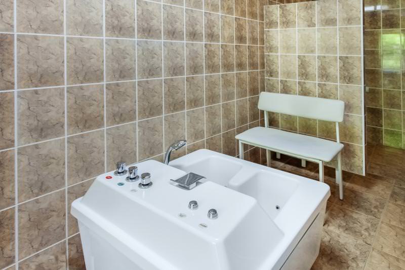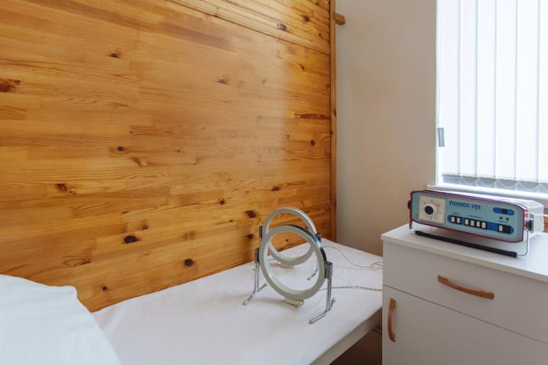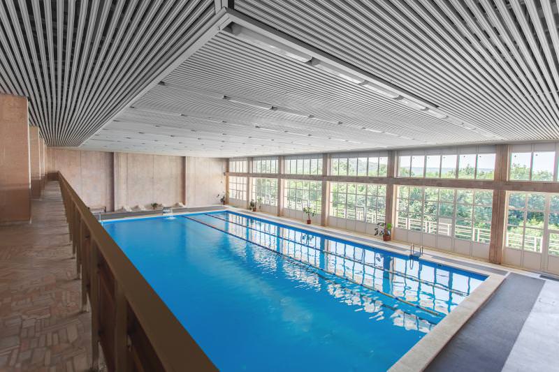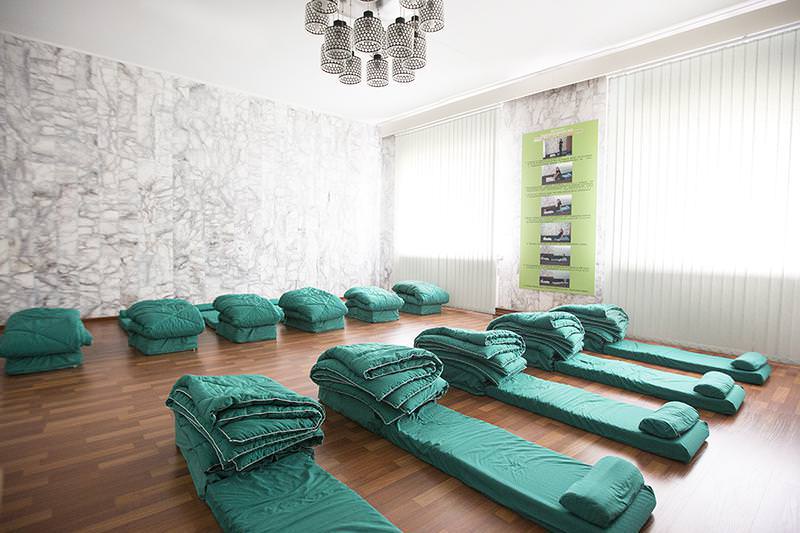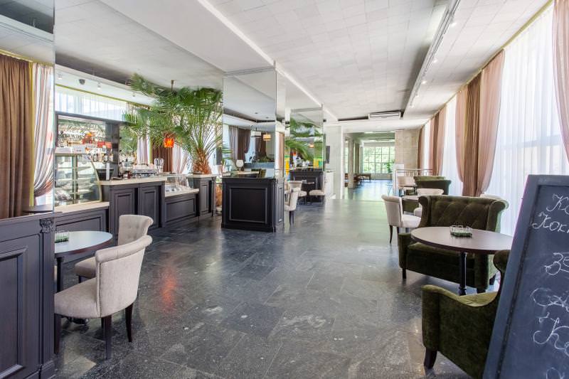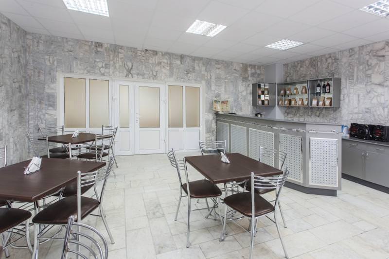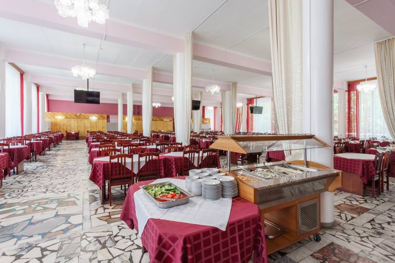 Всего в санатории 4 корпуса – жилой, оздоровительно-спортивный, диагностический и помещение культурного досуга со столовой. Между корпусами имеются теплые переходы, что довольно предусмотрительно из-за круглогодичного режима приема гостей. Питание туристов предполагает принцип заказного меню, которое базируется на полезных диетических блюдах из продуктов экологического региона, приготовленных на пару. По соседству с зимним садом функционирует лобби-бар с ассортиментом кексов, пирожных, горячими напитками.