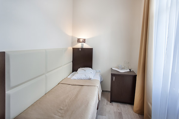 Площадь номера - 9 кв.м. 1 осн. место. 1 доп. место. Балкон. Мебель: вешалка, зеркало, кровать односпальная, прикроватная тумбочка, стол, стул, шкаф. Оборудование: телевизор, холодильник. Санузел на блок: с душевой кабиной, фен. Сервис: Wi-Fi бесплатно, смена полотенец, смена постельного белья, уборка номера.
