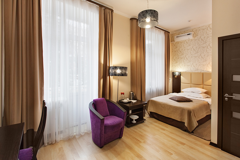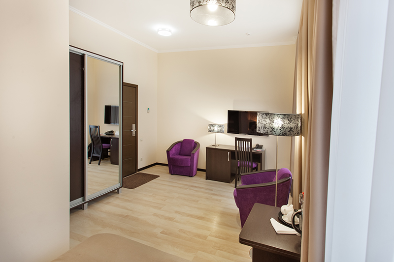Площадь номера - 21 кв.м. 1 осн. место. 1 доп. место. Балкон. Мебель: вешалка, зеркало, кресла, кровать полутороспальная, прикроватные тумбочки, стол, стул, шкаф. Оборудование: гладильная доска, кондиционер, мини-холодильник, набор посуды, сейф, телевизор ЖК, телефон, утюг, электрочайник. Санузел: с душем, тапочки, туалетные принадлежности, фен. Сервис: Wi-Fi бесплатно, смена полотенец, смена постельного белья, уборка номера.